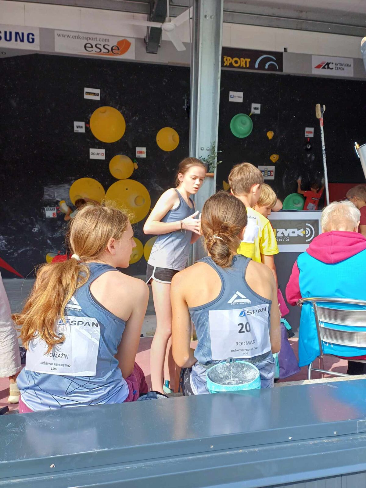 V nedeljo zgodaj zjutraj so s tekmovanjem začele naše cicibanke: Mina Tomažin, Jera Arh in Nina Rodman. Vse so lahko zadovoljne s plezanjem, saj je vsaka naredila nekaj dobrih poizkusov. Preplezale so 5 oz. 6 balvanov. Mina je bila 9., Jera 11. in Nina 15.