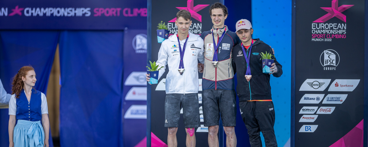 V Nemčiji je potekalo evropsko prvenstvo. Na sporedu je bilo tudi športno plezanje. Tokrat je bil med drugim preizkušen tudi nov sistem formata kombinacije. Če so bile na olimpijskih igrah v kombinacijo vključene vse tri discipline (hitrost, balvani in težavnost), so v novem formatu samo balvani in težavnost. Novi format prinaša tudi nov način točkovanja. Med devetimi tekmovalci so bili tudi Domen Škofic, Vita Lukan in Luka Potočar.